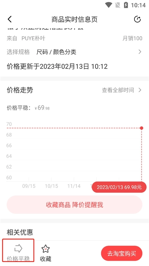 4、点击价格平稳,我们可以看到历史价格。