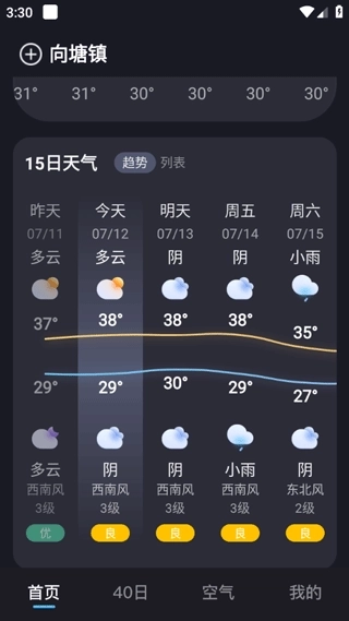 5、在40日里面可以看到一段时间的天气趋势