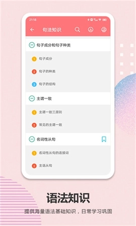 1、词法知识:这里有各种各样的语法知识可供你选择学习。