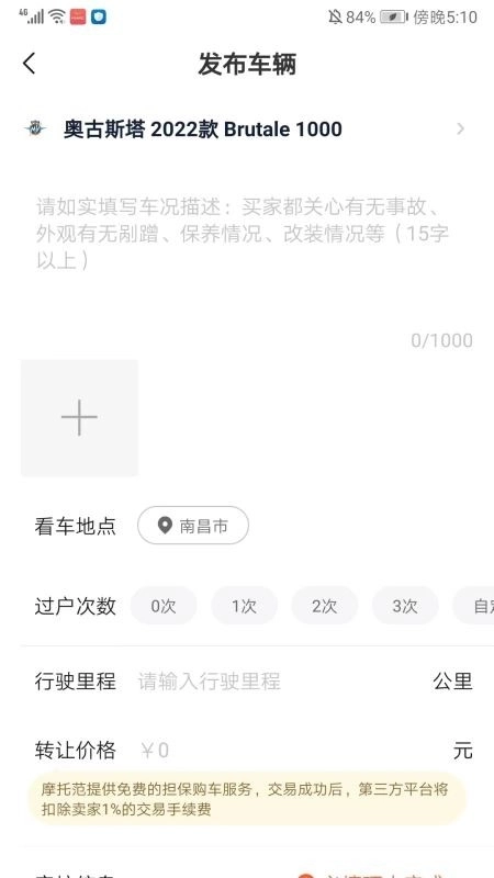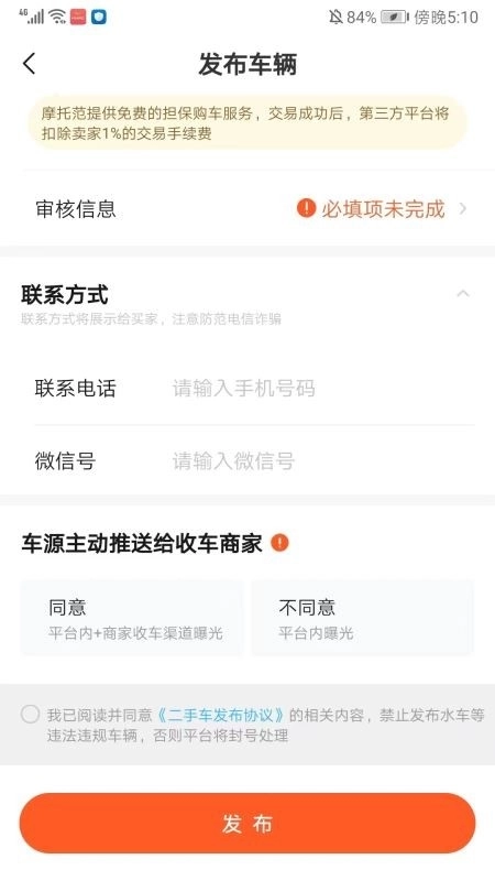 6、根据提示描述摩托车状况,最后点击发布。