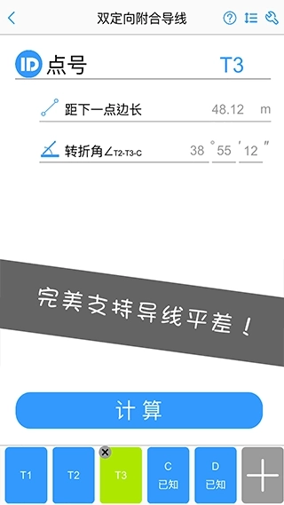 1、具备支导线、闭合导线、附合导线等各类别的控制测量与水准测量功能,功能强大且全面。