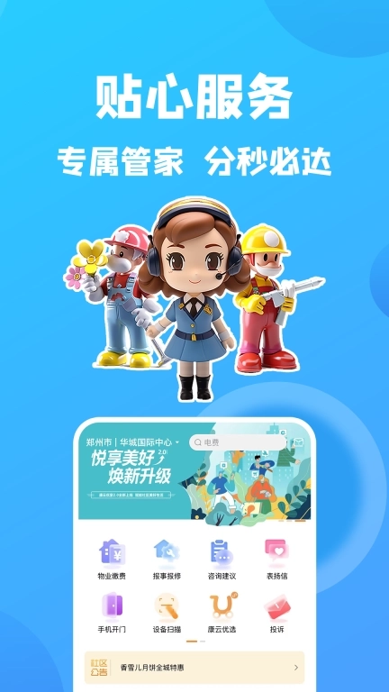 康云优家app是一款面向小区住户的生活服务类软件,涵盖物业缴费、报事报修、访客邀请、租售服务等功能,帮助用户便捷处理物业相关事务,享受更舒适的社区生活。此外,用户还能通过该软件及时查看小区通知与公告,第一时间掌握社区最新动态和安排,避免对日常生活造成不便。