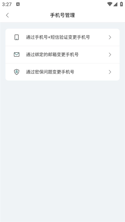 3、进入“账号设置”界面后,点击“变更手机号”选项,此时会出现变更方式的选择项,根据自身需求挑选合适的方式即可。