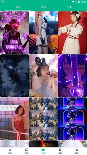 在首页能够浏览到最新、最热、推荐以及分类等不同类别的壁纸。