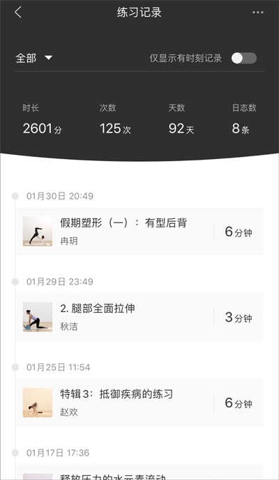 APP记录了你的每次练习,在练习记录处可以查看。每一次练习,都是你最为重要的印记: