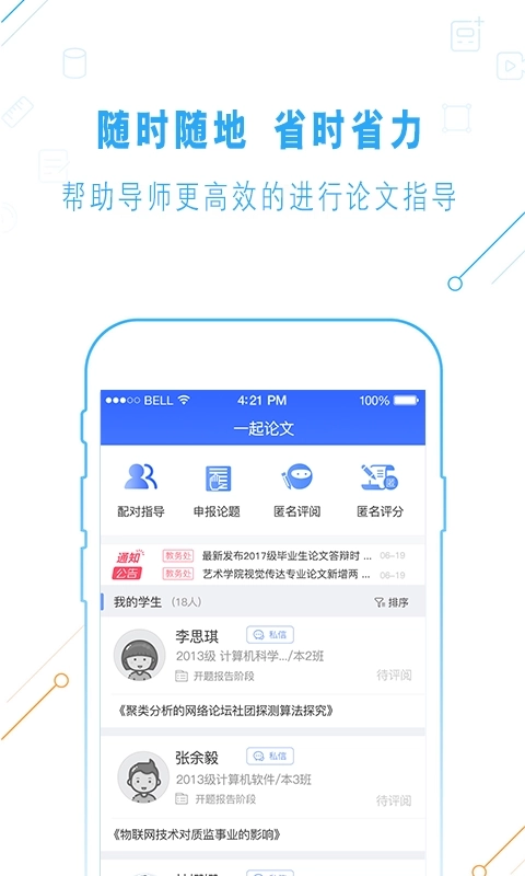 一起论文是一款十分实用的论文在线讨论学习软件。它具备多种不同功能,能够协助用户解决论文撰写过程中遇到的各类问题,还能让用户随时在线与名校的优秀师生交流,助力自己独立完成论文,并且操作起来极为简单便捷。