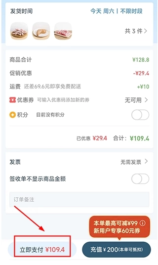 新鲜:所有菜品都是当天供应,且都是周边社区近距离配送,没有其他生鲜电商所谓的配送损耗,新鲜优势明显;