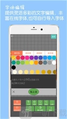 3.轻松制作图片文字,您可以设置背景图片或背景颜色,并在图片上添加艺术文字、涂鸦和自定义贴纸。