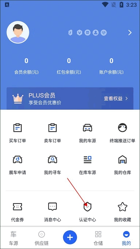 2、进入个人界面后点击认证中心。