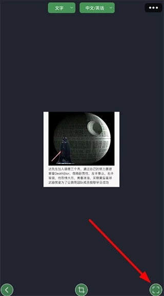 3、接下来在扫描完成之后,就可以点击选择图片中的文字,然后通过右下角的按钮来提取出该文字了!