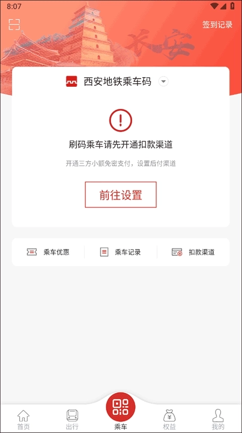 首先,打开软件后,在首页找到位于页面中间的“乘车”选项并点击它。