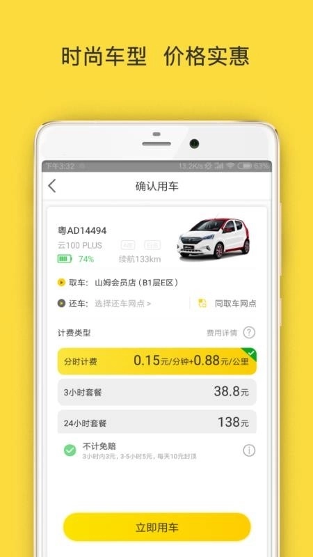 通过手机操作即可完成一键取车与还车,轻松掌控用车服务流程。