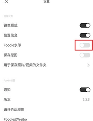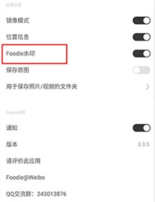 3、再设置界面,找到“Foodie水印”选项。
