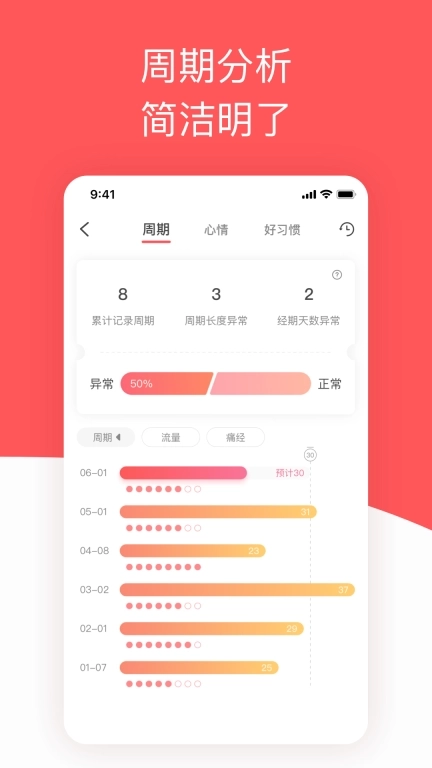 3、根据您的历史经期预测您的未来经期和排卵日。