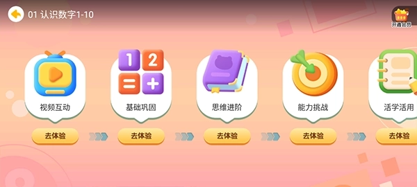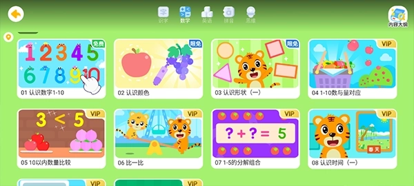 然后就会进入数学启蒙教程页面,里面从简单到进阶的所有课程都有
