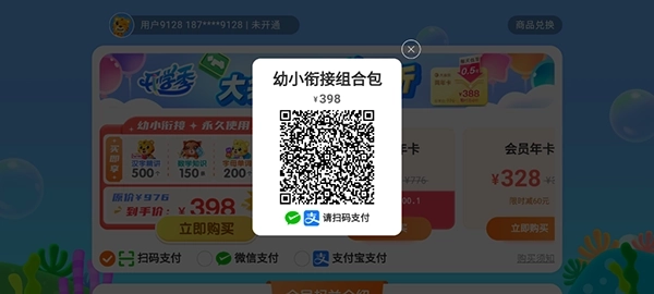 家长们通过手机号登录或微信扫码登录后,页面会展示会员优惠活动的相关介绍。
