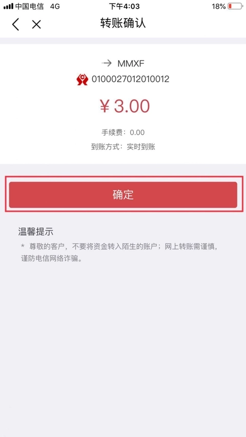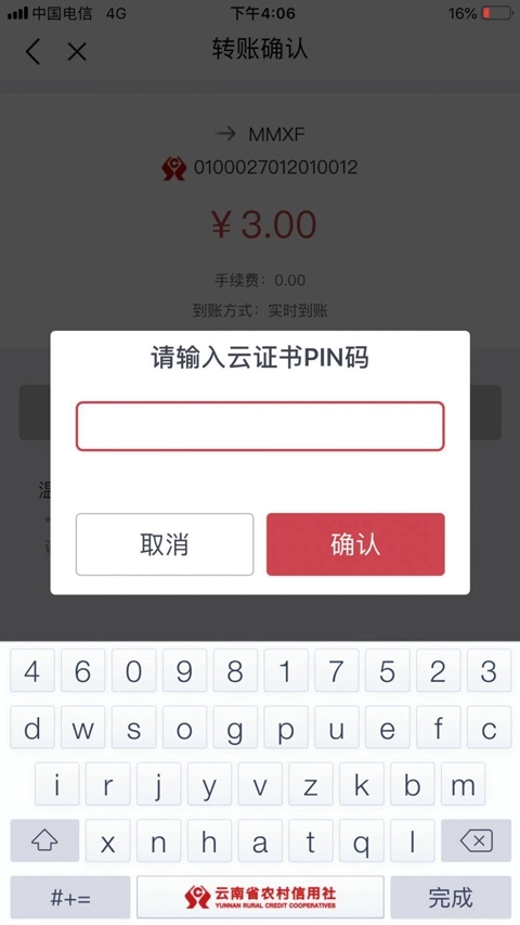 2、点击【确认】,输入PIN码,即可转账成功
