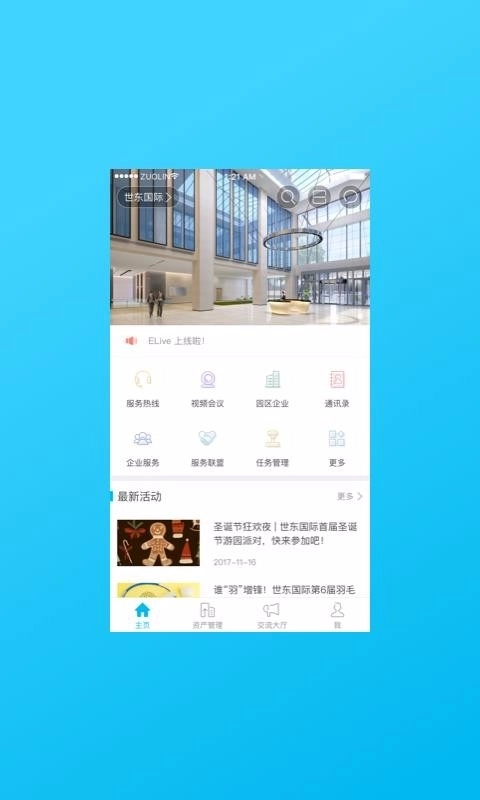 ELive是一款专注于园区服务的应用,涵盖视频会议、企业服务、即时通讯、任务管理等多元服务项目。园区内的写字楼白领能通过它享受便捷办公体验,服务覆盖范围广泛,还可及时获取园区最新活动资讯,实用性极强。其视频会议功能支持不限时空在线开会,借助摄像头与麦克风实现音画同步,省去了预约会议室的繁琐流程。平台汇聚园区所有企业,既能查询企业名录、查看任意企业详情,入驻企业也能找到丰富的企业服务,有需求时可直接在线下单。如此实用的园区服务APP,快来下载体验吧!