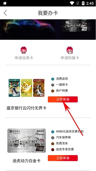 选择你要申请的卡的种类,点击立即申请;