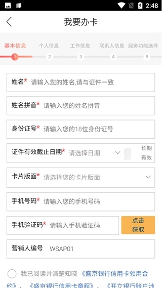 填写所有办卡需要完成的信息即可申请。
