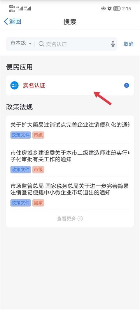 1、进入软件之后在搜索框输入实名认证。