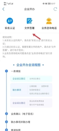 1、首先进入到软件当中点击首页中的企业开办。