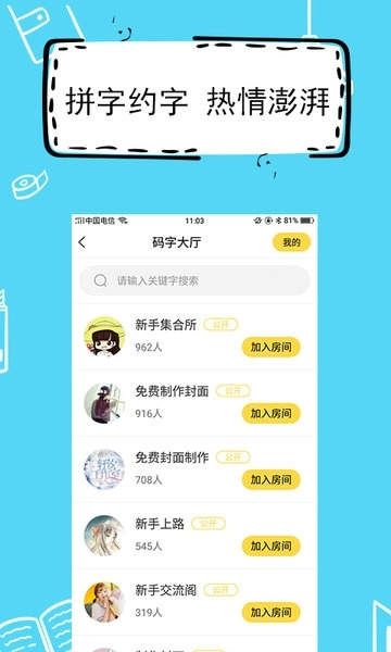开发拼字,约字功能,约上三五好友,日万日六千不是梦,有效克服懒癌。