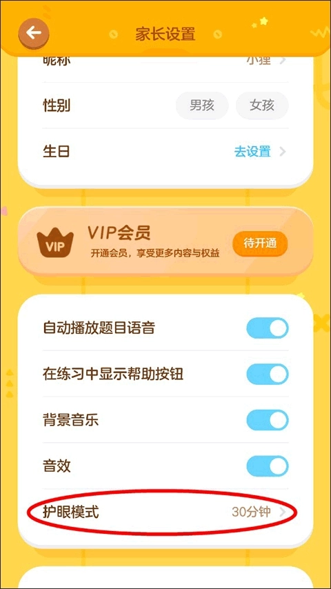 学习固然重要,但小朋友长时间看手机难免会对眼睛造成一定损伤。有道少儿思维APP贴心考虑到这一点,专门为应用增设了护眼模式,家长可以通过该模式设置使用时长,从而更好地守护孩子的身心健康。那么,这个护眼模式该在哪里设置呢?别着急,接下来就让小编为大家详细演示设置步骤。