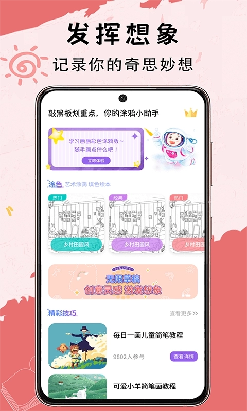 各种辅助工具随时用,橡皮擦、上色、缩放、复制等,是你的手机绘画好帮手呢!可以做你的记录本,也可以是你的几何画板