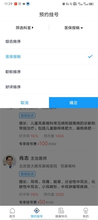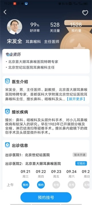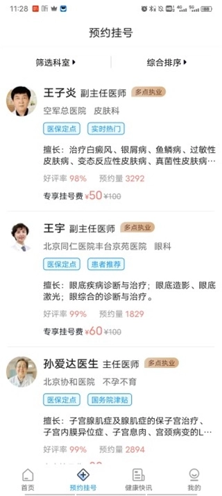 4、各类专家号、主任医师号等优质号源均可通过该软件提前预约