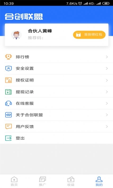 3.每个用户在这里都可以一目了然的去查看自己的收入。