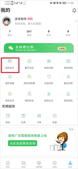 1、打开奋斗在韩国app,然后在首页点击右下角的发布按钮