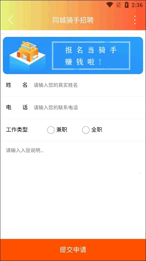 3、这个时候选着同城骑手招聘;