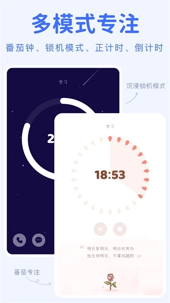 -支持一键快速设置,进入心流模式,提供多种白噪音轻音乐可选,享受身临其境的感觉;