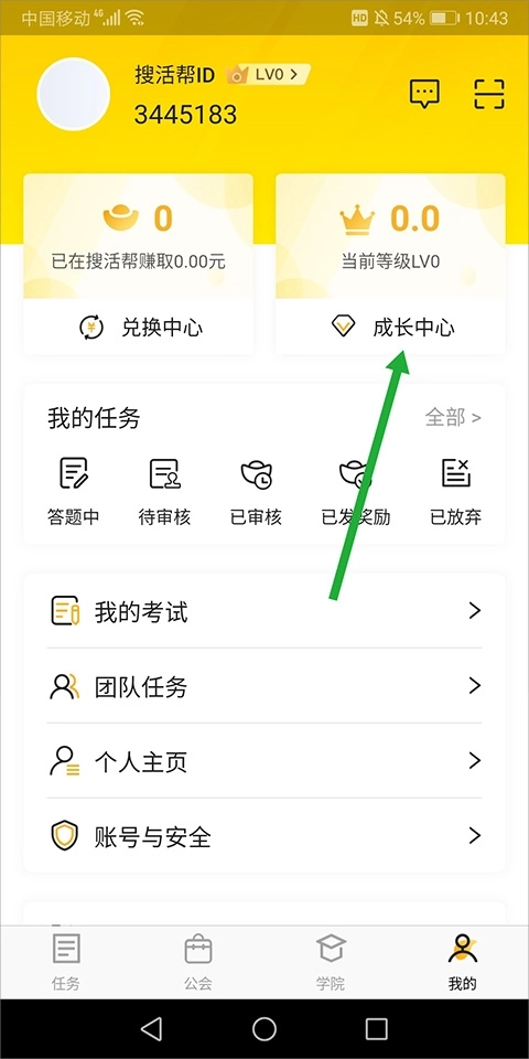 若您的考试次数已用完,可以进入【我的】页面中点击【成长中心】