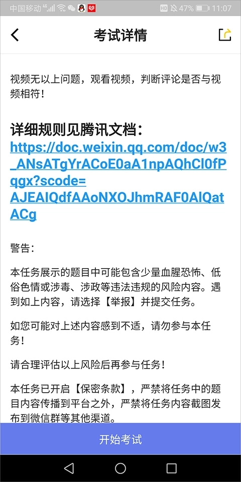 1、首先务必吃透规则。开始任务前,要把规则理解透彻,这能提升做题的准确率,避免发钱时因准确率低被扣很多。做题前建议把规则读三遍,有疑问就加答疑群(通常任务规则里会提供QQ群或微信群)咨询管理人员。千万不要为了追求做题数量和速度而忽略规则,不然会造成严重后果。