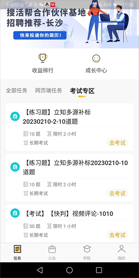 平台上的任务类型丰富多样,不同任务对答题能力的要求也各有差异。因此,平台会根据具体的答题能力要求安排相应考试。完成【考试】任务后,部分考试结果会即时公布,还有一些则需要人工审核,通常在48小时内会通知您考试结果。一旦考试通过,您就可以开始接任务赚取收益了!