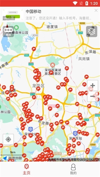 1、打开深圳外地车app官方版,在主页上能看到用红色摄像头标注出来的区域,这些就是深圳限行摄像头所在的位置。