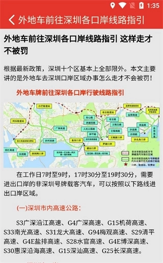 5、返回上一级,选择外地车前往深圳各口岸线路指引,用户能够看到详细的进出口岸方案,以上就是深圳外地车app官方版的使用方法了。