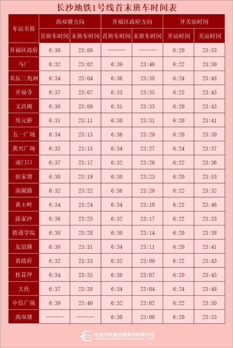 长沙地铁2026运营时间表