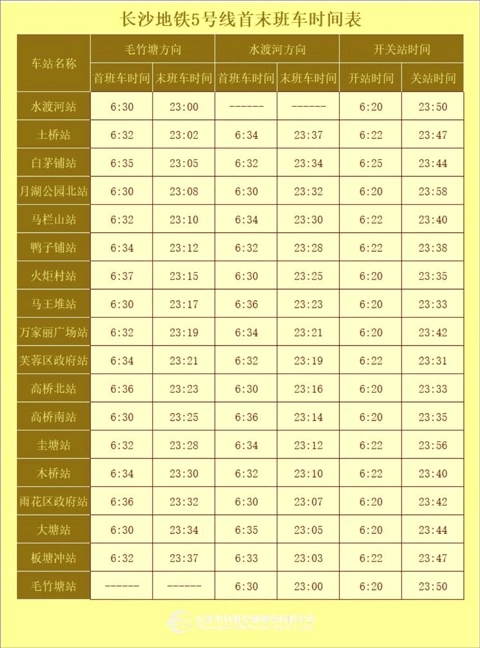 5号线首末班车时刻表