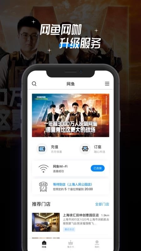 网鱼app是一款专门面向网吧消费者的网吧专属软件,借助它,用户能快速查找周边的网吧,无需再浪费时间到处寻觅;网鱼安卓版具备定位导航功能,用户开启定位后,app就会把附近的网吧位置逐个展示出来,方便用户挑选心仪的网吧上网,不必东跑西颠,让上网变得轻松便捷;网鱼手机版还提供全新的座位预订服务,用户选定网吧后就能自由预约喜欢的座位,可节省不少时间,助你抢先一步占到好位置,让游戏体验更上一层楼;感兴趣的用户不妨下载体验一番。