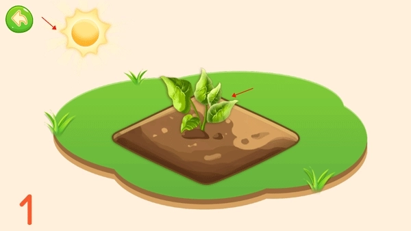 4、太阳照耀着土地,一株植物从土里冒了出来,通过动画的方式教小朋友认识数字1。