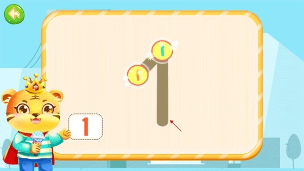 5、接下来就进入书写环节,按照提示学习书写数字,之后还会通过寻找数字1、对数字1进行归类等多种方式,帮助孩子学习数字。