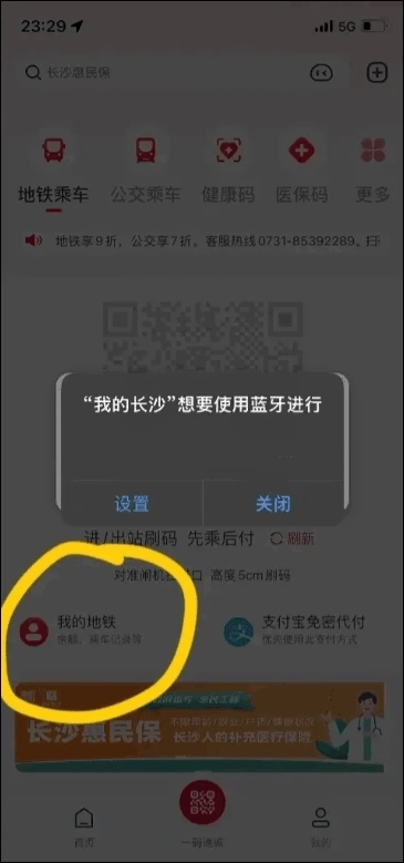 3、在刷码界面找到并点击“我的地铁”按钮选项;