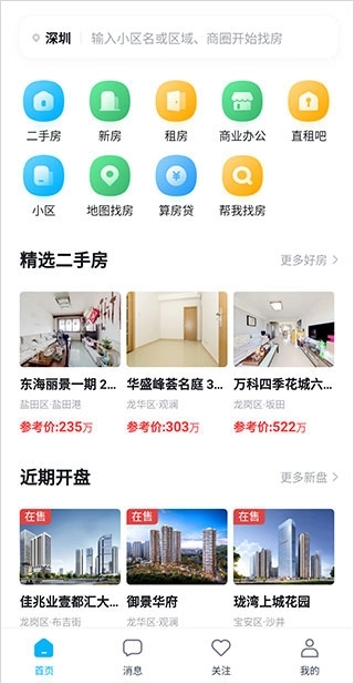 1、【海量房源】看房网提供二手房、新房、租房、写字楼等房源实时信息。2、【搜索查询】打造高效的房屋买卖搜索系统,可支持多维度复合搜索,助力用户快速精准找房。