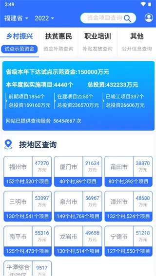 在首页,我们能够依据地区来查询各个城市拟实施的项目以及对应的金额。