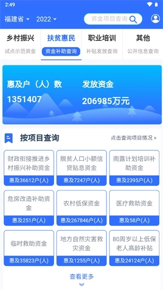2、“扶贫惠民”界面则可以进行资金补助查询;