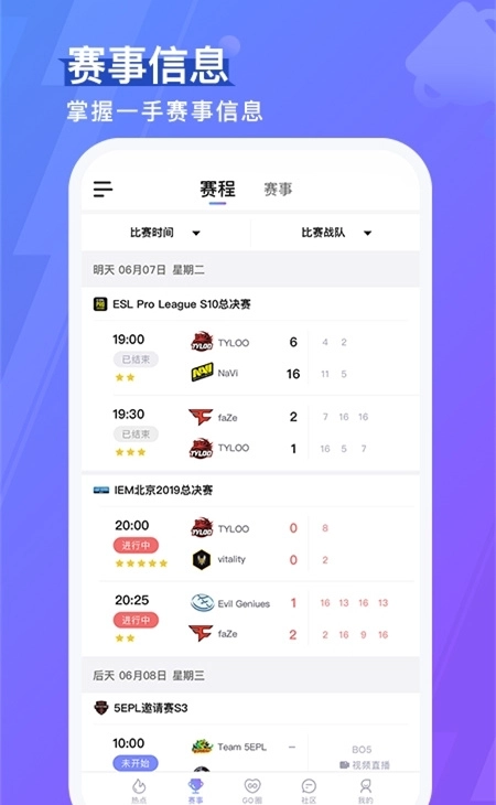 通过应用就能清楚了解比赛的赛事信息,实时掌握比赛的输赢情况;