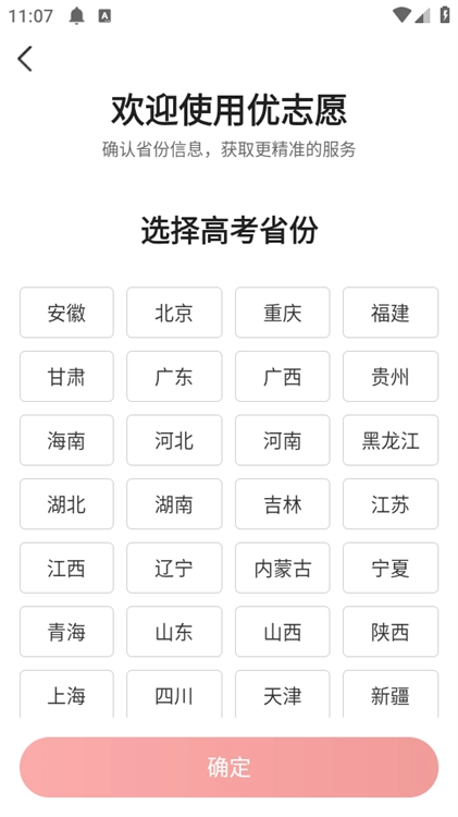 1、下载安装优志愿APP,注册登录后选择所在地区。